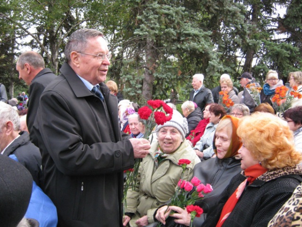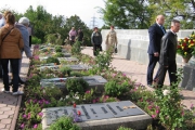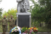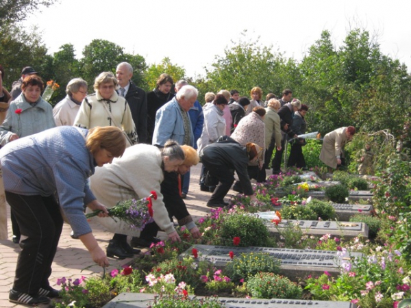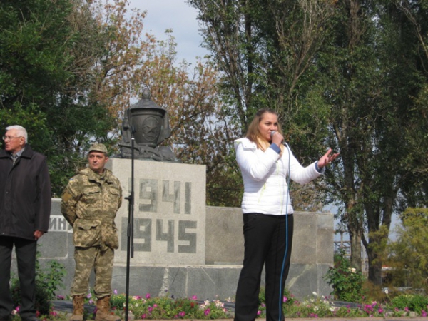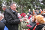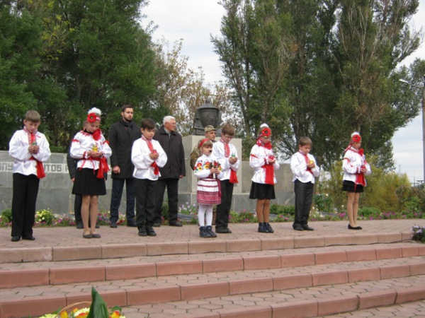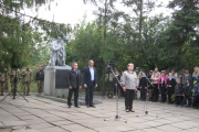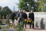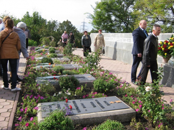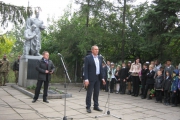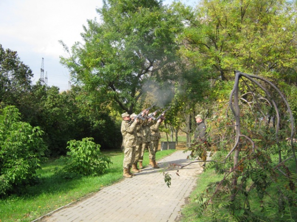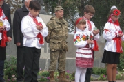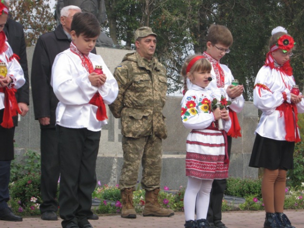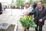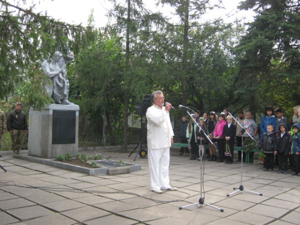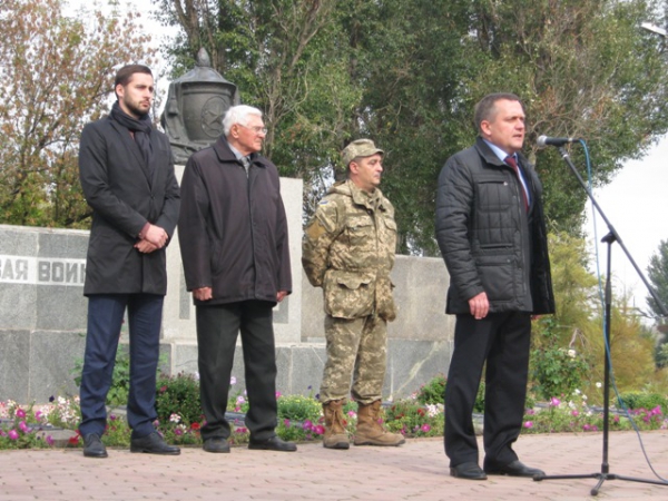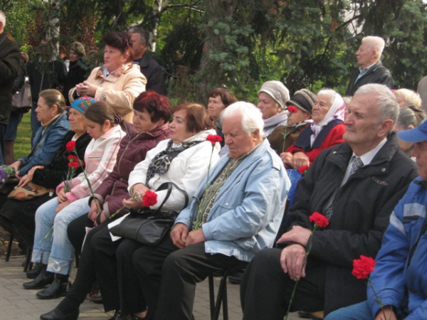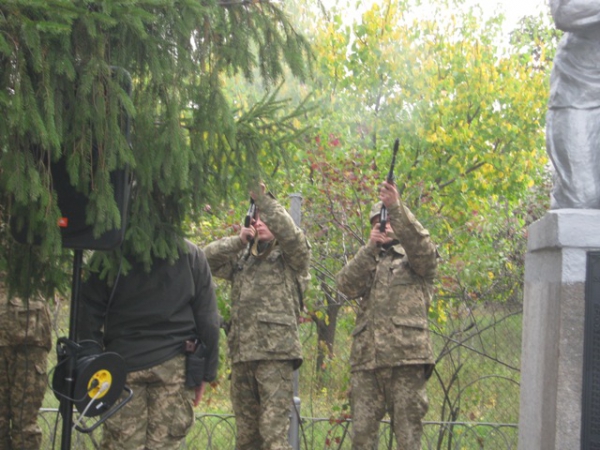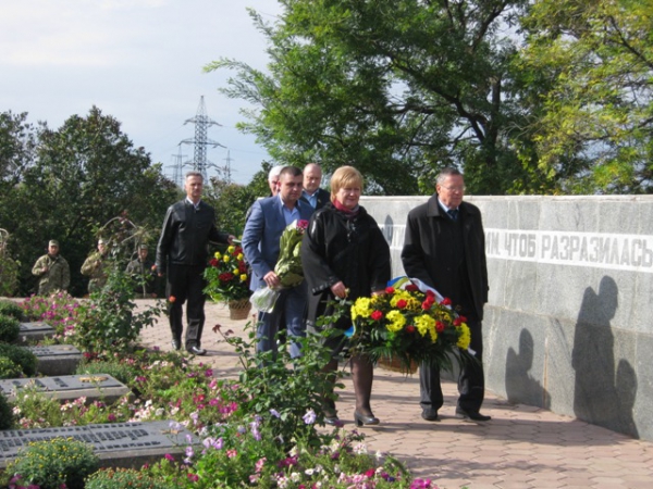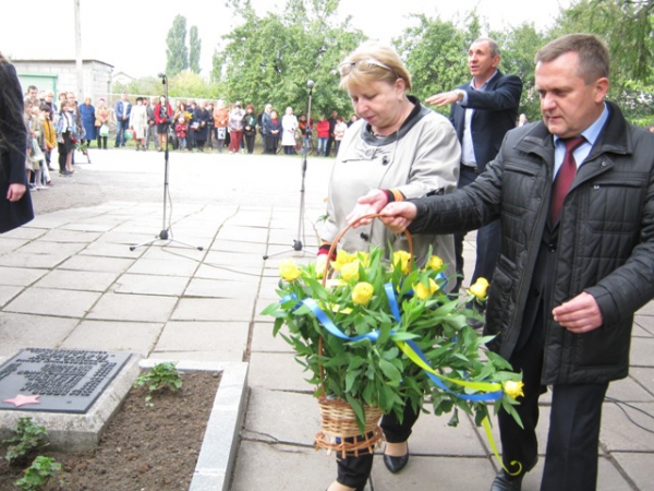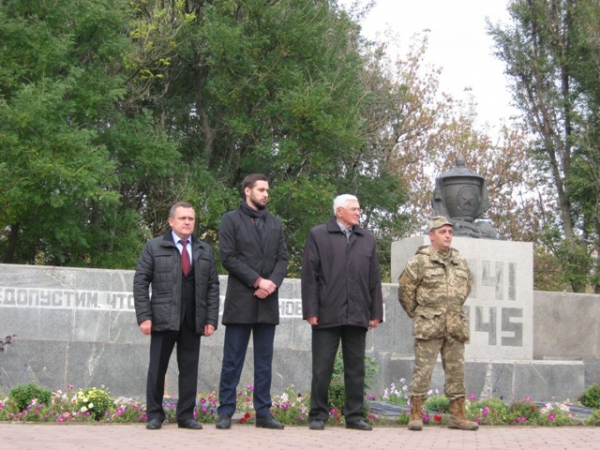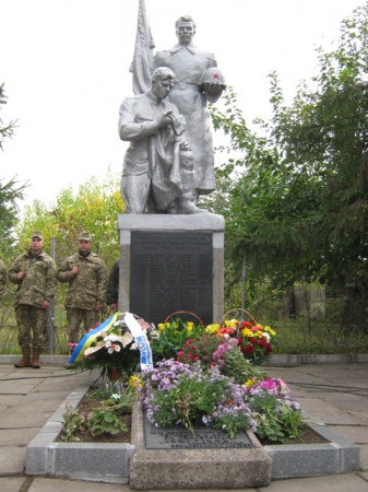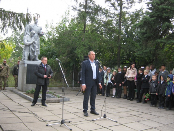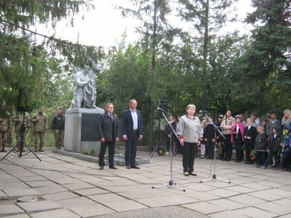 Пам'ять загиблих у роки війни вшанували хвилиною мовчання та триразовим залпом. Учасники мітингу поклали квіти до братської могили.