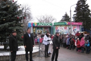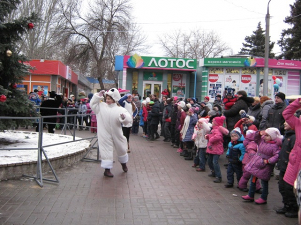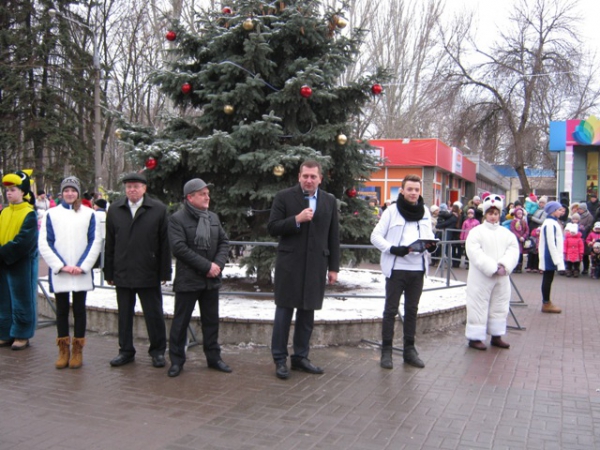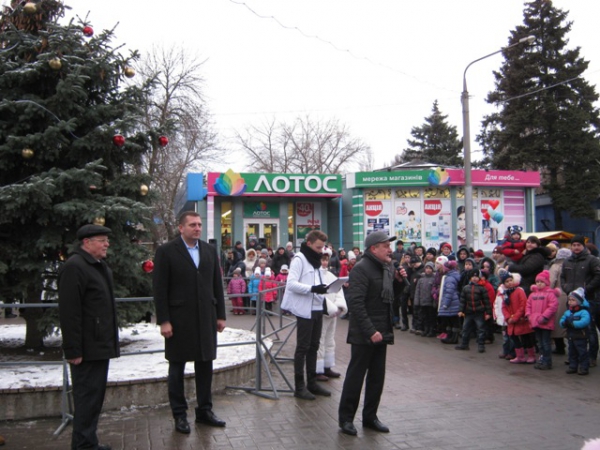 Присутні на заході генеральний директор ПрАТ «Запоріжвогнетрив» Віктор Бусько та депутат міської ради Михайлик П.А. з привітаннями вручили новорічні солодкі подарунки усім дітям присутнім на святі.