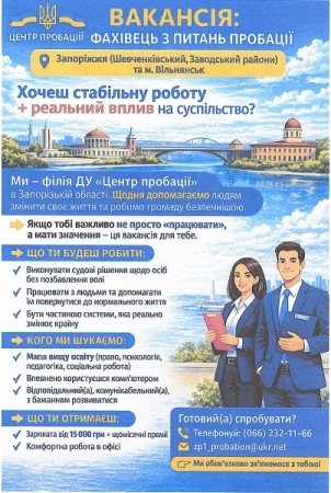 Центр ПРОБАЦІЇ запрошує на роботу зацікавлених