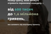 💼Розмір гранту, який зможуть отримати переможці конкурсу, — від 600 тисяч до 1,6 мільйона гривень, все залежить від кошторису проєкту.