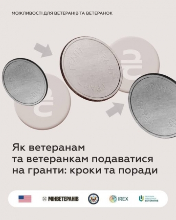 ℹ Інфокампанія «Можливості для ветеранів та ветеранок» реалізовується в межах партнерства Мінветеранів та Програма реінтеграції ветеранів IREX, яку втілює IREX in Ukraine за підтримки Державного департаменту США U.S. Department of State. Зміст є виключною відповідальністю IREX та Мінветеранів і не обов’язково відображає погляди Державного департаменту США.